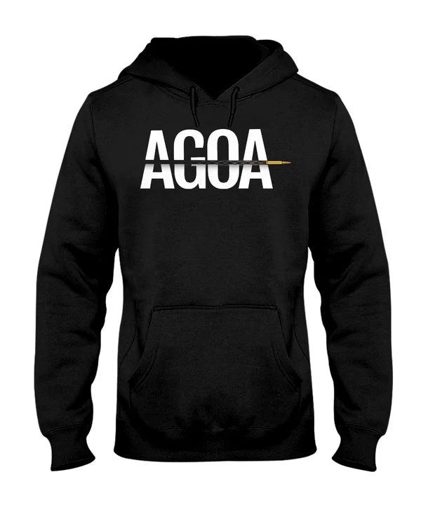 AGOA stands for "All Guns On America"—a pro-Second Amendment statement advocating for unrestricted gun rights nationwide. This is not moderate gun-rights messaging. This is absolute, uncompromising Second Amendment advocacy. In gun-friendly states, rural areas, and Second Amendment communities, this resonates strongly. In restrictive states, anti-gun areas, or progressive urban environments, this will be read as extreme and confrontational. This hoodie is for people who believe the Second Amendment means exactly what it says without exceptions, restrictions, or compromises. If you need to ask whether this is too bold for your area, it probably is. If you don't care what gun-control advocates think, wear it anywhere.