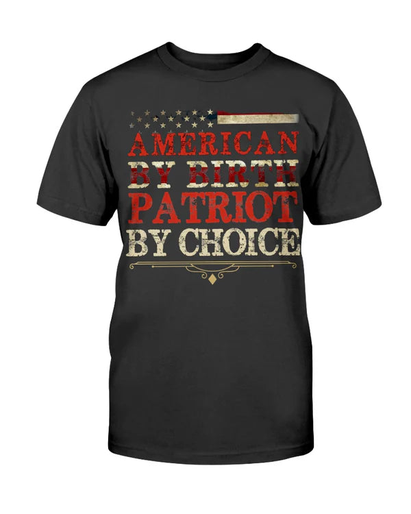 - Bold “American by Birth, Patriot by Choice” design