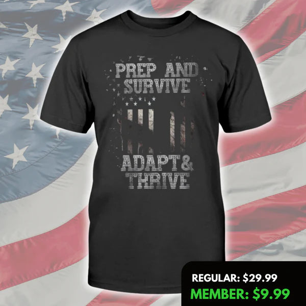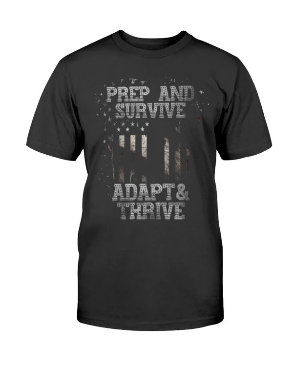 This shirt isn’t just apparel—it’s a mindset. Built for those who know that being prepared is the first step, surviving is the test, and adapting is how you thrive. With its distressed American flag backdrop and rugged lettering, it’s perfect for patriots who live by grit, resilience, and common sense.