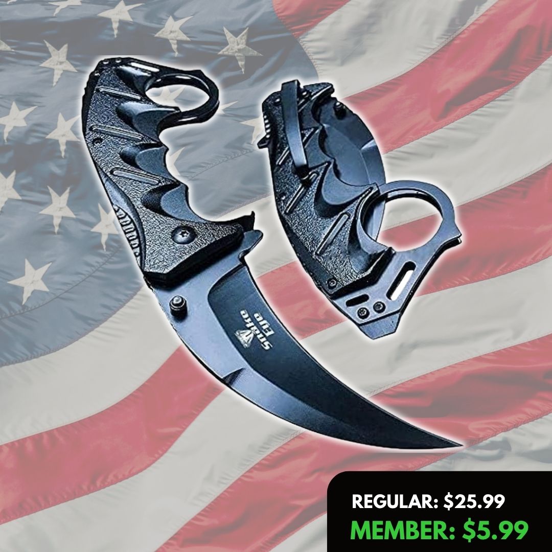 The Lightning Quick Deploy EDC is built for patriots who like their tools fast, fierce, and dependable. With its sleek karambit design and quick-flip action, this blade doesn’t just look tactical—it is tactical. Whether you’re cutting cord, opening boxes, or defending liberty one slice at a time, this knife is always ready for action.