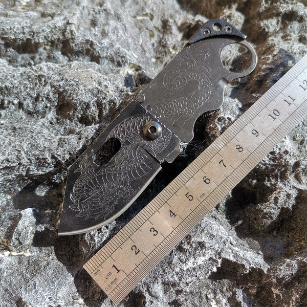 Don’t let its size fool you — the SwiftCut Mini Utility Blade is a pocket powerhouse forged for quick cuts, tight spots, and everyday reliability. With a rugged all-metal body and intricate dragon engraving, this blade blends artistry with attitude. Perfect for daily carry, gear bags, or glove compartments — because real preparedness fits in your pocket.