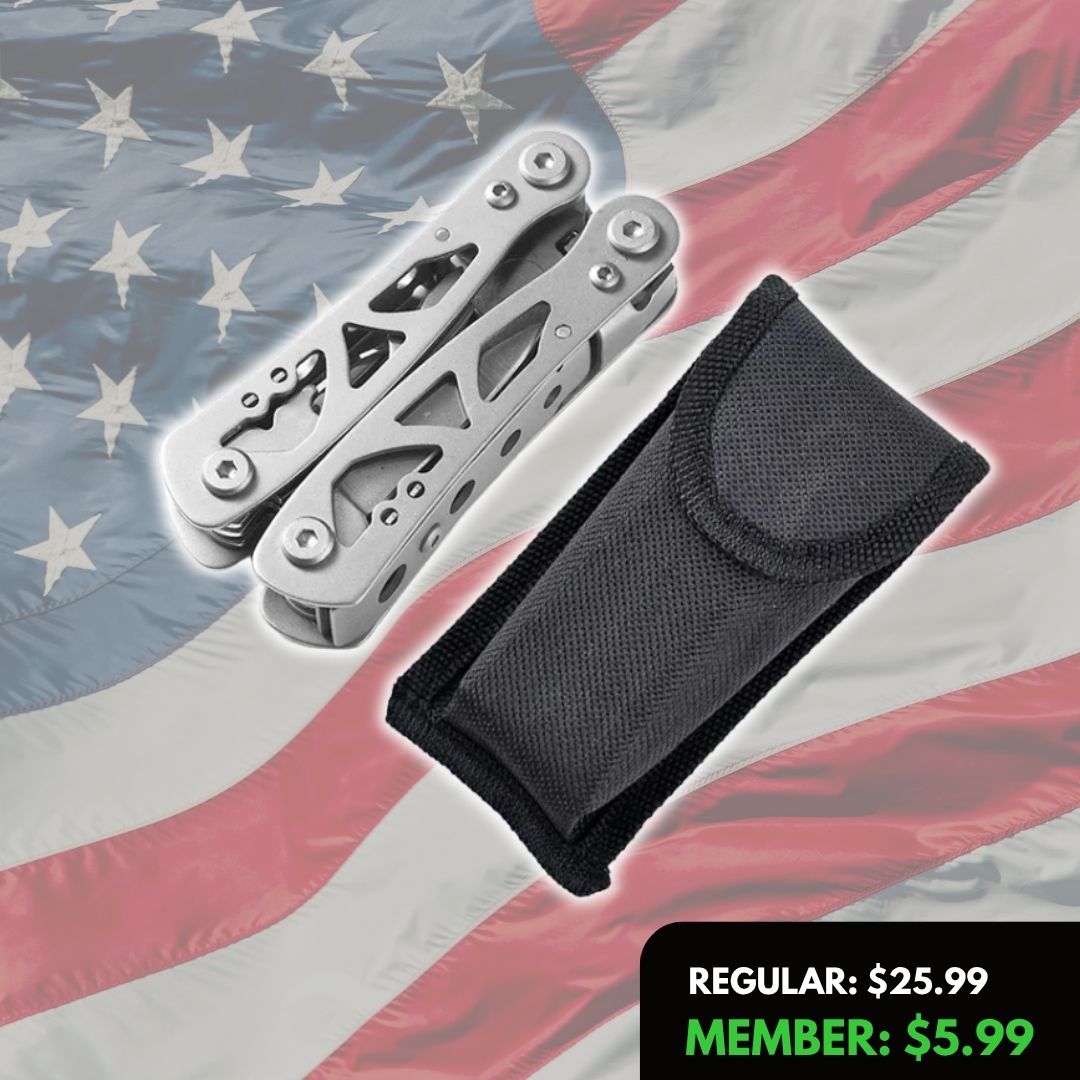 - 12-in-1 stainless steel multitool — pliers, knives, screwdrivers, and more