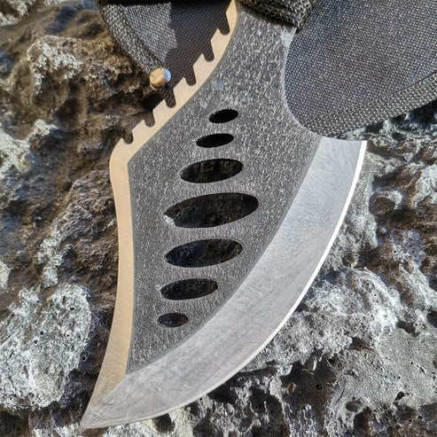 The Wilderness Warrior Axe is forged for those who still believe in doing things the hard way — the right way. With its curved edge, piercing point, and rugged grip, this beast of a blade is built for chopping wood, clearing brush, or holding the line when the wild gets a little too close. It’s not just a tool — it’s a statement that you’re still made of tougher stuff.