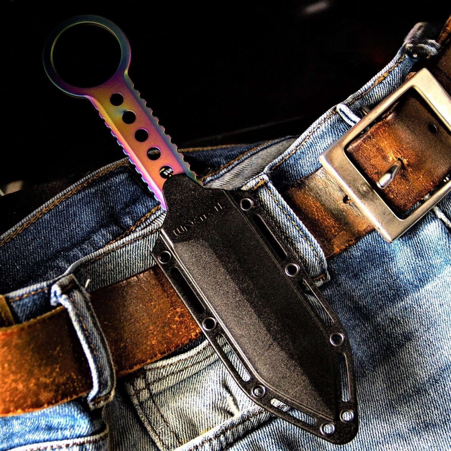 The Kydex sheath is built tough and retains the blade securely. Some guys prefer a tighter fit—you can customize it in 2 minutes with a lighter and your hands (plenty of tutorials online). We also include multiple mounting options. And if you're not 100% satisfied, we stand behind every blade with our guarantee.