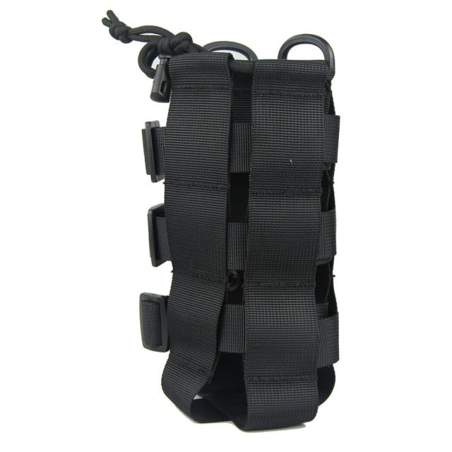 The expandable and contractable cordage design secures everything from slim water bottles to 2-inch diameter bear spray cans with a precision hold. You're not locked into one bottle size or use case — adapt this single pouch to protect fire extinguishers, HPA tanks, oversized thermoses, or emergency gear without buying multiple carriers that clutter your loadout.